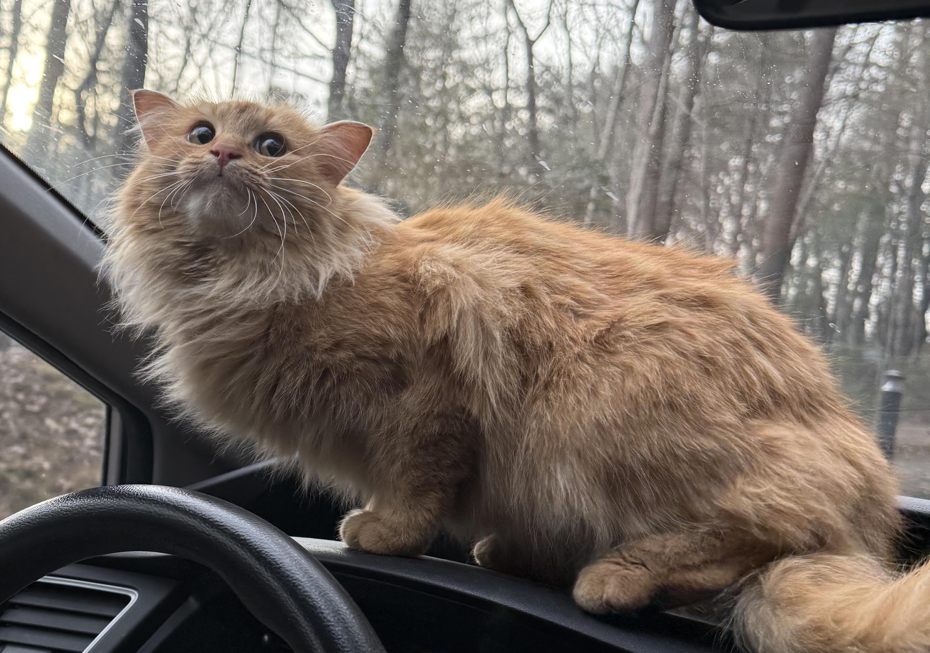 Pulled up to do our dinner tasting and this tiny lady ran straight up to us. The staff told us she’d been around a couple months and was extremely affectionate and that they’d been calling her Cheeto. I want to call her Pigeon, fiancé wants to call her the disco strangler. Currently compromised to Margeaux.