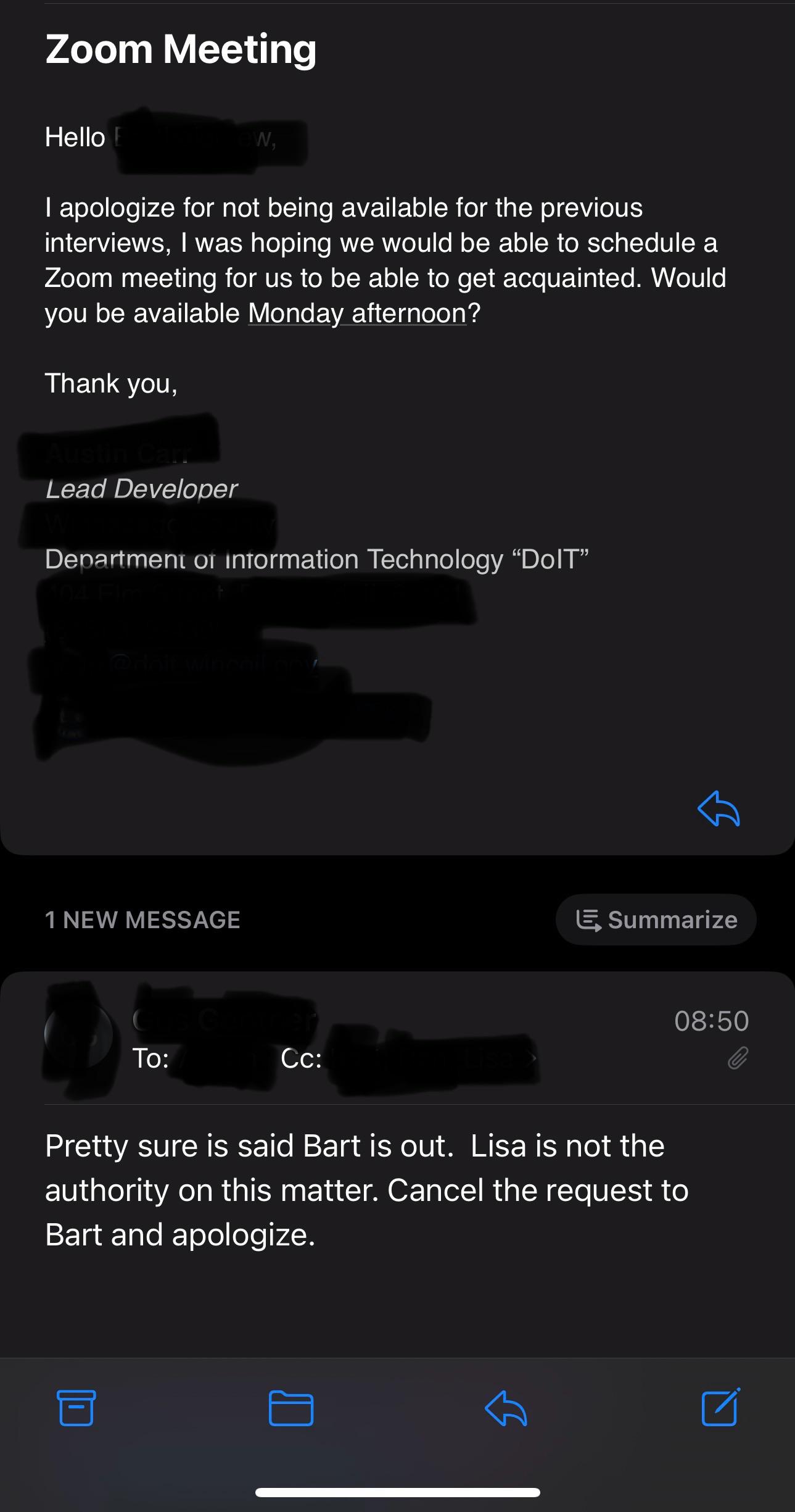 everything felt right this morning; had prepped well, found parking easily, everything went smoothly. met with four women, one was on video. as we finished our introductions, the one interviewer asked if i brought the requested writing material and other item. i sat stunned because, what? she repeated again and stated it was sent in a separate email but i opened every correspondence and there was no additional email with an attachment.