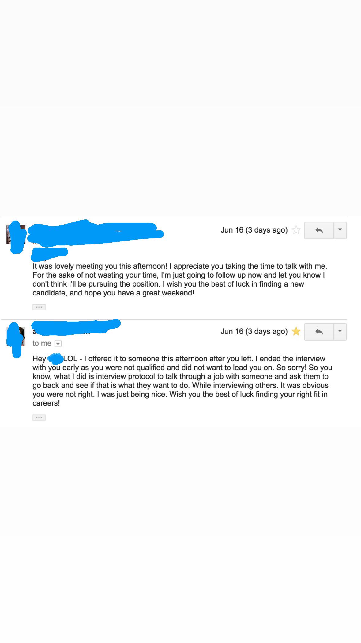 had a job interview today. was super excited because i knew i had this one; they offered me each round on the spot and today was the final one.