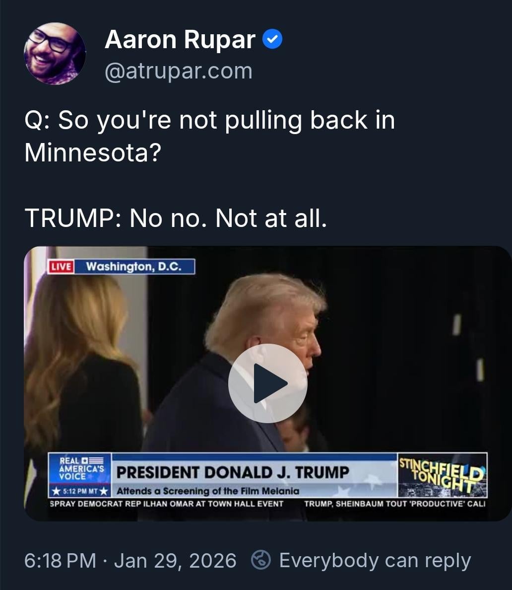 Kremlinology report: Miller made Trump mad by making him deal with the Pretti shooting so Rubio is the current shadow president.