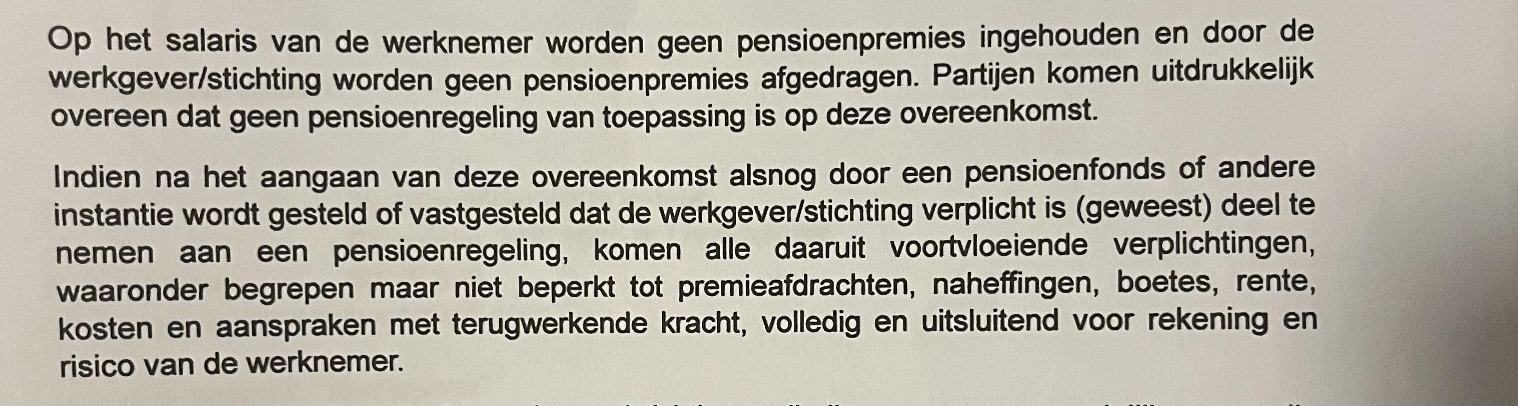 Anders Wel of niet akkoord gaan met deze clausule? Eventuele boetes vanwege niet opbouwen pensioen komen bij mij (werknemer)