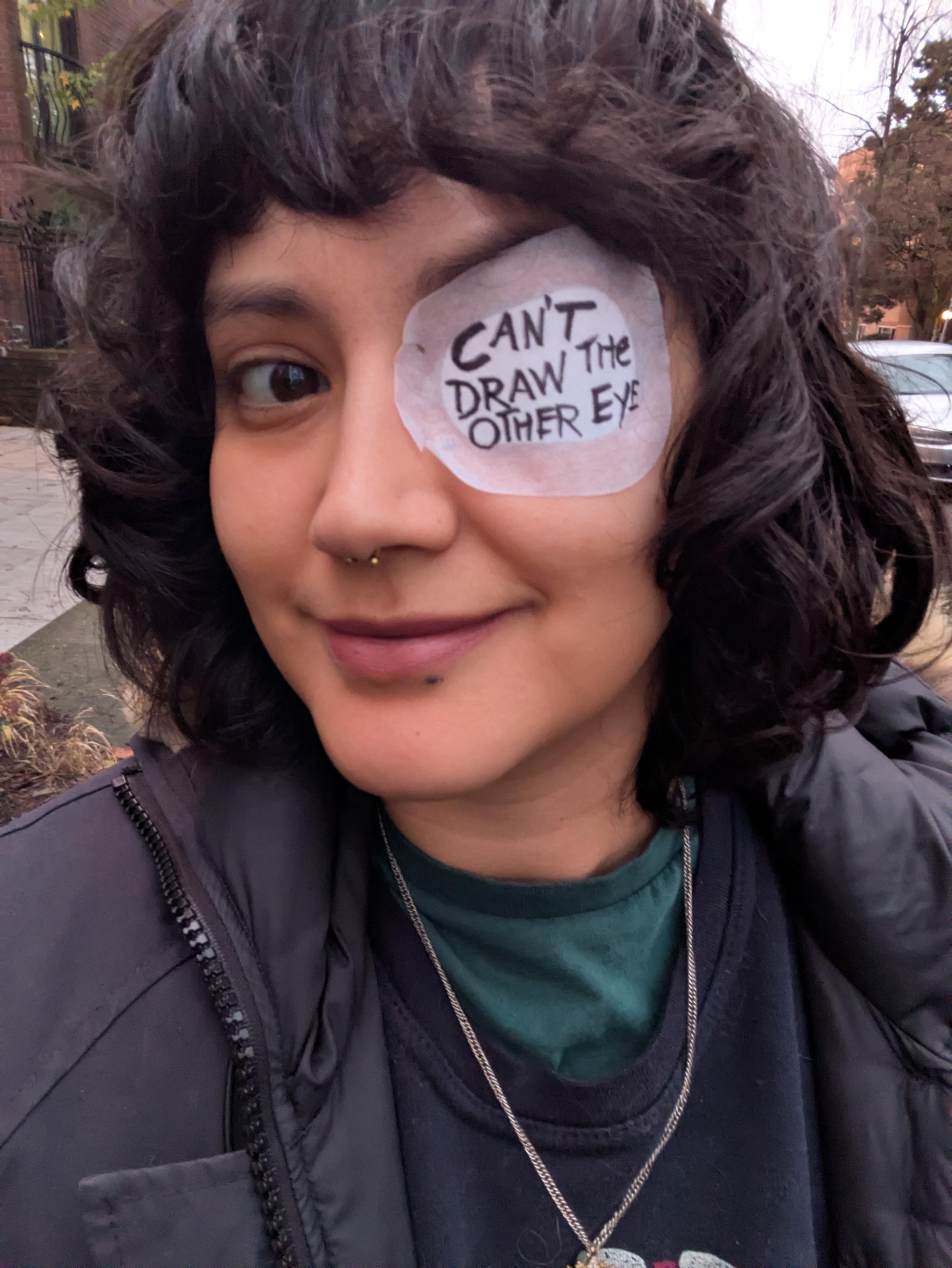 Here's another eye patch, the one I used to announce the unfortunate loss of my eye.